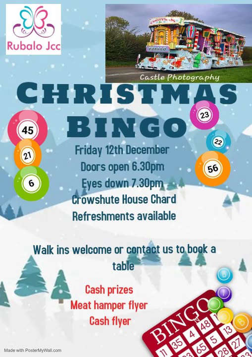 Rubalo Junior Carnival Club present an evening of Bingo, and all are welcome!