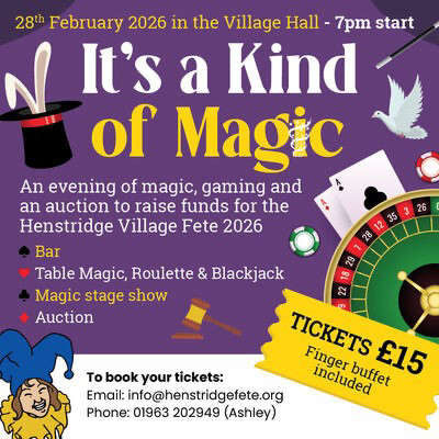 An evening of magic, gaming and an auction to raise funds for the Henstridge Village Fete 2026.