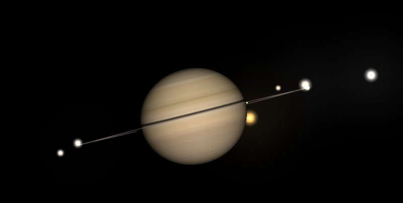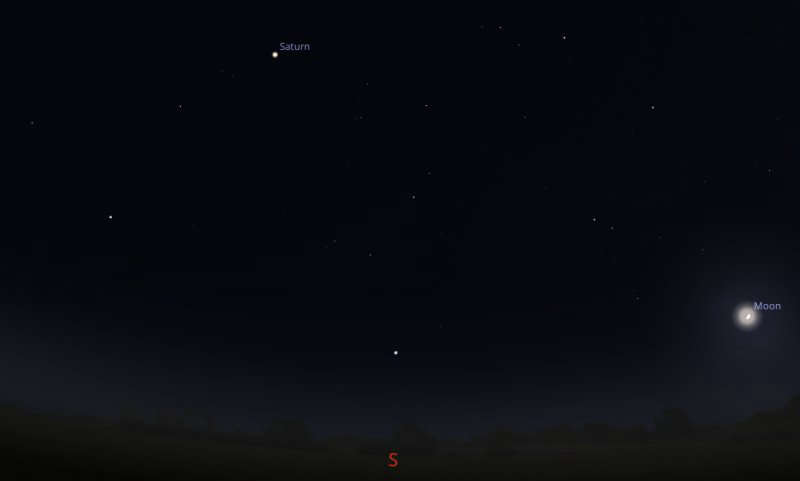 Although Saturn's dust rings are not currently well-placed for observing, a number of its many moons will be obvious. Keep watching and you should be able to see the largest of Saturn's Moons, Titan, being gradually occulted by the planet.
