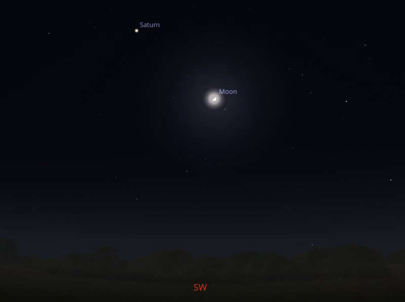 The following evening, Saturday 29th, it should be possible to observe a 65%-lit waxing gibbous Moon close to Saturn if you look towards the south west around