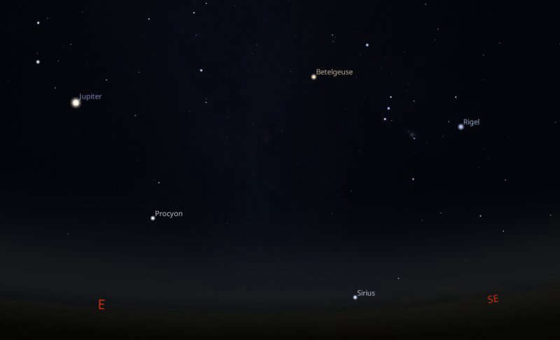 You should notice two bright stars just above Jupiter - these are Castor and Pollux - the "heads" of the twins in the constellation Gemini.