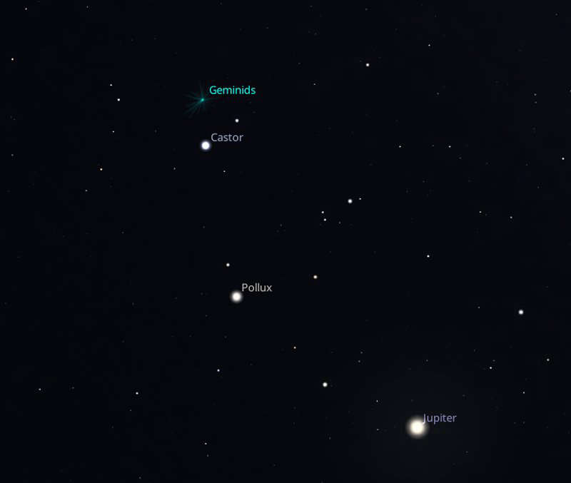 Sunday 14th sees the peak of the annual Geminids meteor shower. If you look towards the east around