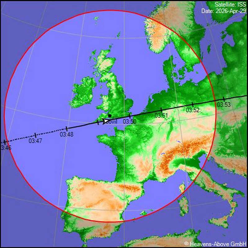 I haven't mentioned the International Space Station recently, but it is still orbiting around us, travelling at a speedy 17,000 miles per hour! There are some good visible passes next week where the ISS will have a magnitude brighter than -3.0 but you will have to stay up late or be a very early riser!