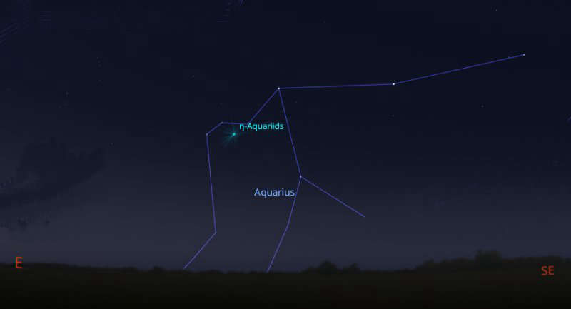 At its peak, the Aquariids can produce up to a very respectable 55 shooting stars per hour, but don't get too excited as the conditions are not the best for viewing the show - the meteors will be close to the horizon, it will be starting to get light and there will be some light pollution from a waning gibbous Moon off to the south.